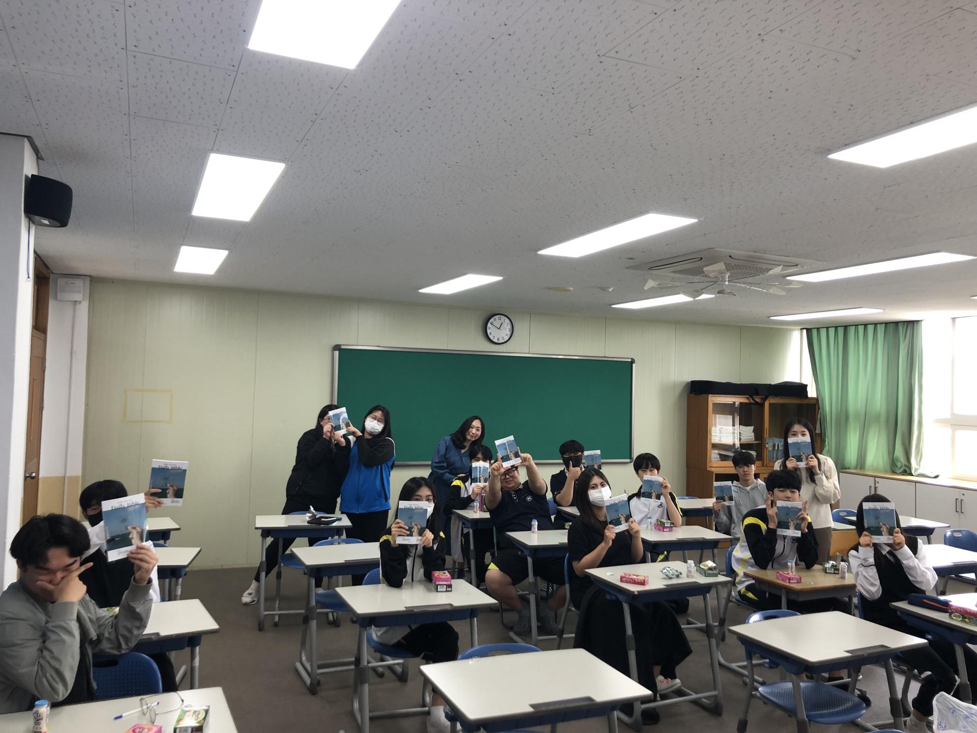 거제제일고는 매주 월요일 점심시간에 음악실에서 모입니다. 학생 15명과 교사 3명이 모여 함께 찬양하고, QT 나눔을 진행합니다.